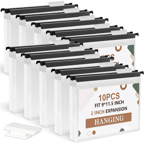 10pcs Heavy Duty Hanging File Folders with 2-Inch Expansion Tabs & Black Insert Gasket - Extra Capacity Letter Size (A4\u002FA5\u002FA6\u002FA7\u002FA8) - Durable Plastic Filing Cabinet