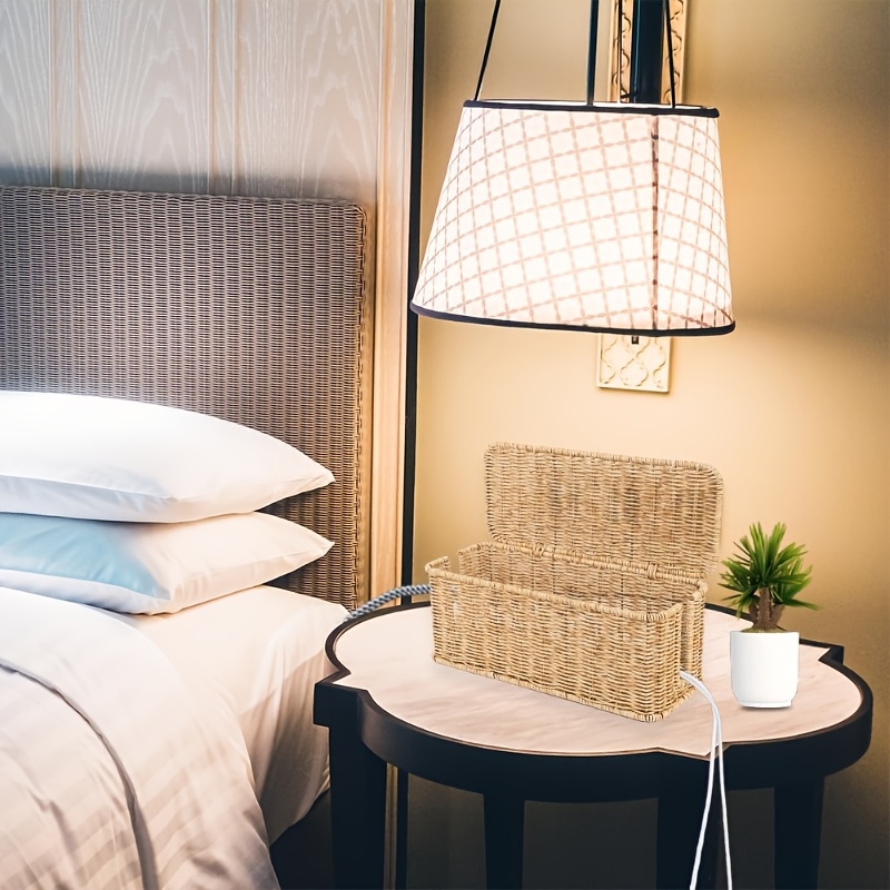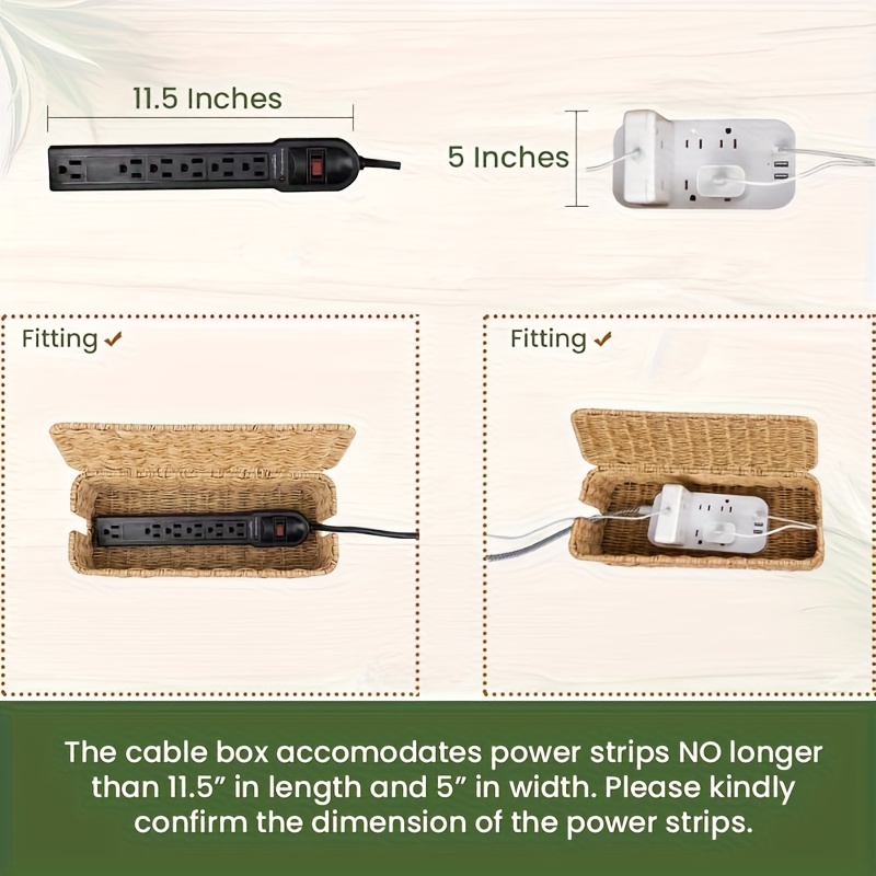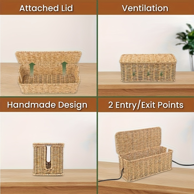 1 Handmade Brown Cable Management Box, Rattan Cable Management Box, Desktop Cable Storage Box, Hidden Power Strip And Cable Management Box, Suitable For Computer Routers, USB Hubs And Sockets